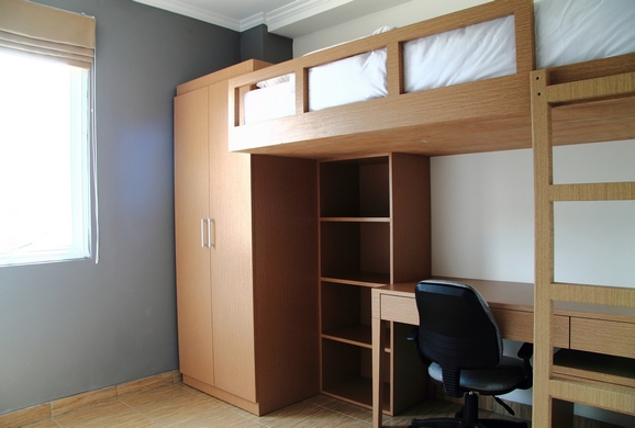 Dormitory Brooklyn High has 48 modern minimalist rooms for 51 students. Each room is facilitated with spring bed, locked drawer wardrobe, desk and chair, bookshelf, shoe rack, TV, AC and WIFI, etc. Each has been designed to accommodate the needs of a student.